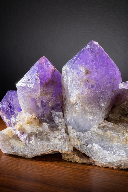 These amethyst druses are natural mineral formations with densely clustered crystal points and rich coloration. Carefully split to reveal their inner crystal structure, each piece is selected individually and differs in size, formation, and tone, making every druse a one-of-a-kind natural object.